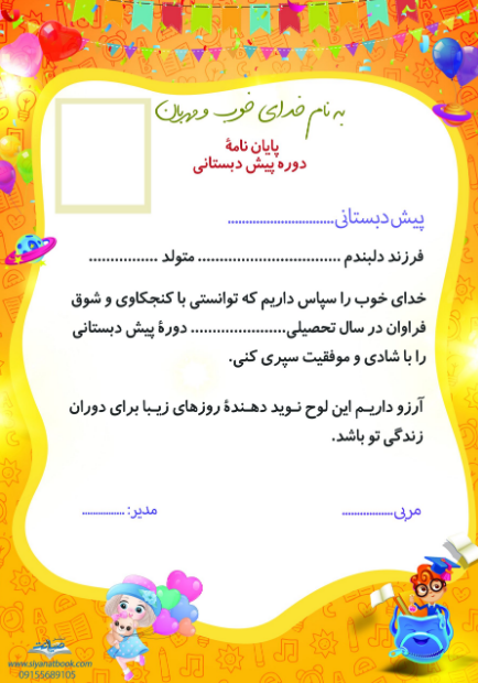 لوح پایان دوره پیش دبستانی تک برگ ویژه جشن پایان دوره پیش دبستانی ها بهترین هدیه یادبود